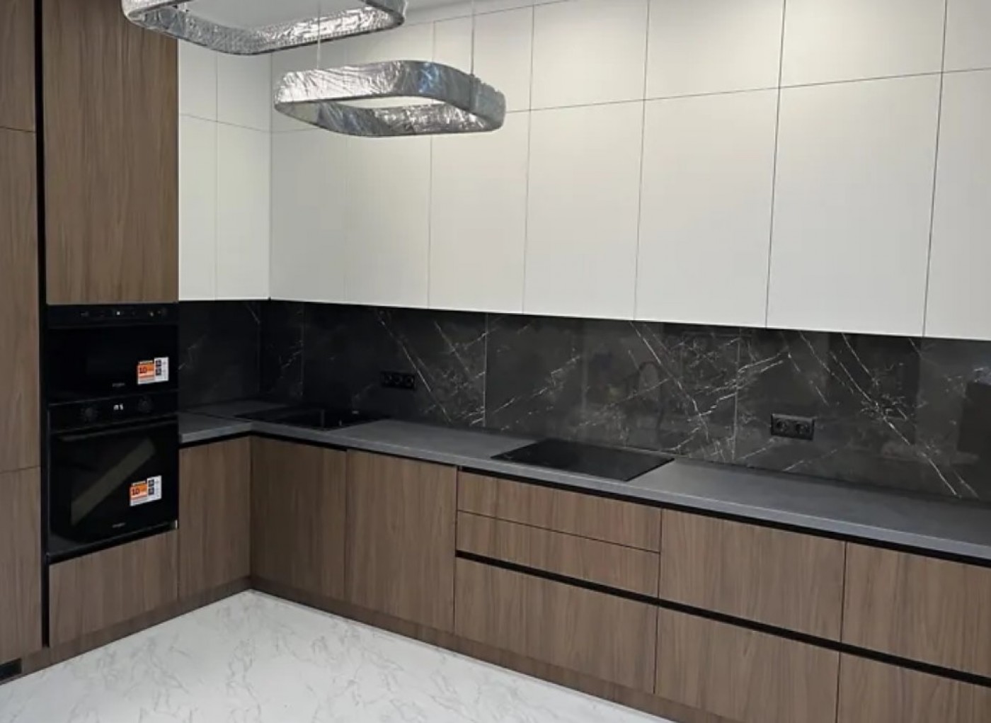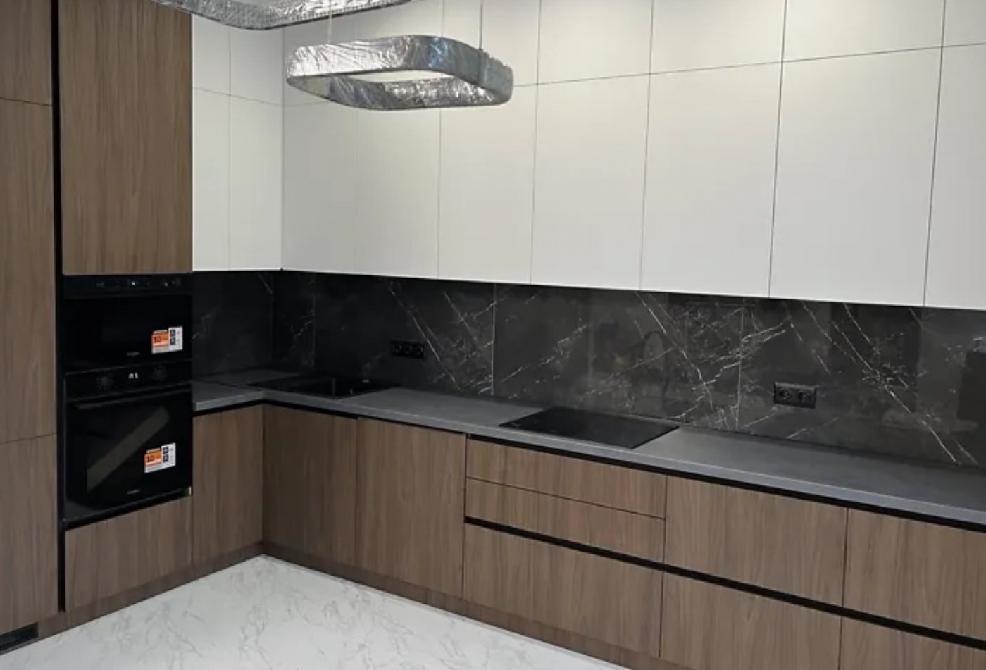 Нова техніка: вбудований холодильник, мікрохвильова піч, духовка, варильна поверхня, посудомийка.
