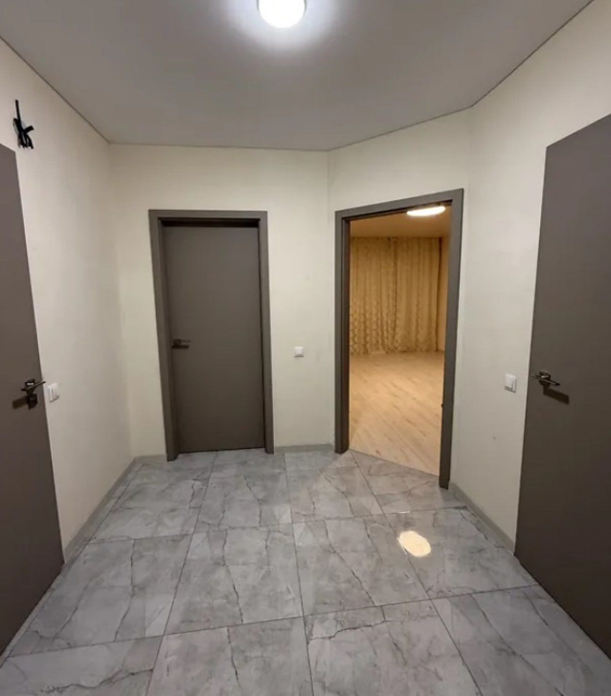Підлога обладнана системою тепла підлога абсолютно по всій квартирі , що забезпечує комфорт у будь-яку пору року.В гардеробній, кухні, коридорі та на балконі покладено стильну сіро-білу мармурову плитку, яка гармонійно поєднується з інтерєром. Ванна кімната оздоблена ефектною чорно-білою мармуровою плиткою, що додає простору елегантності та сучасного вигляду. У квартирі встановлені бежеві міжкімнатні двері, які підкреслюють теплу й затишну атмосферу.